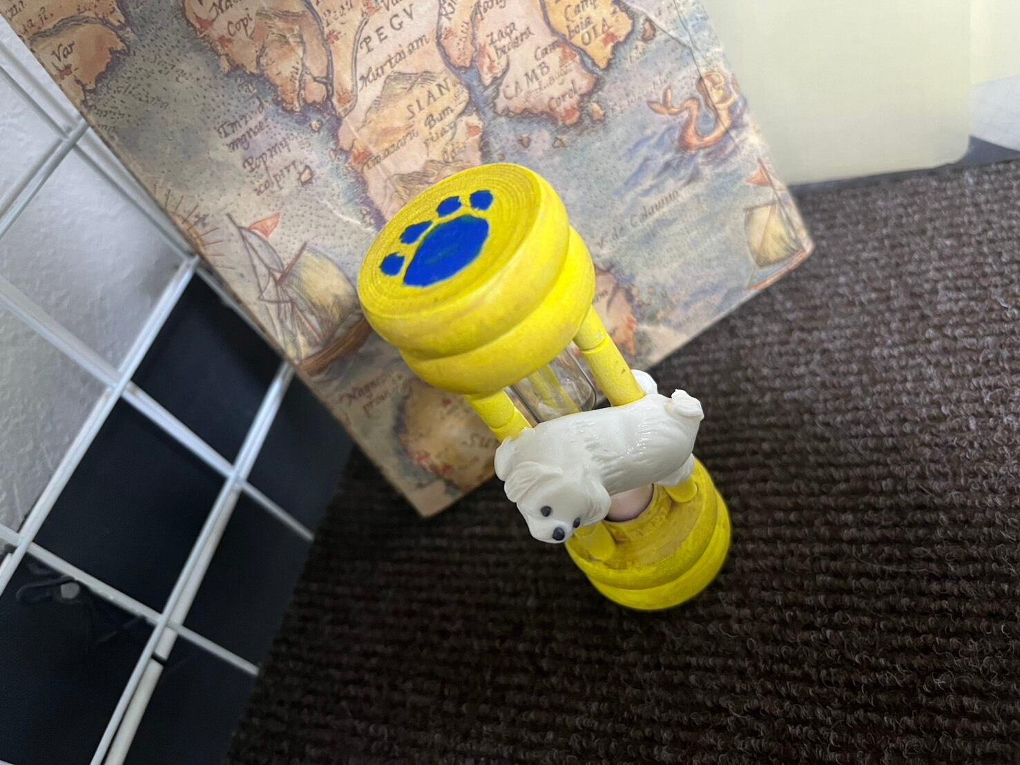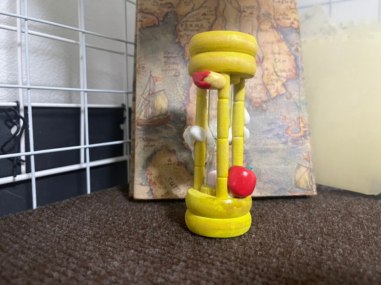 大好物のリンゴを探しているマルチーズが装飾された砂時計です。さりげなくウサギカットになっています。